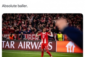 拜仁官推赛后晒出了奥利塞向球迷展示球衣的庆祝照,并配文写道:绝对球星级表现。